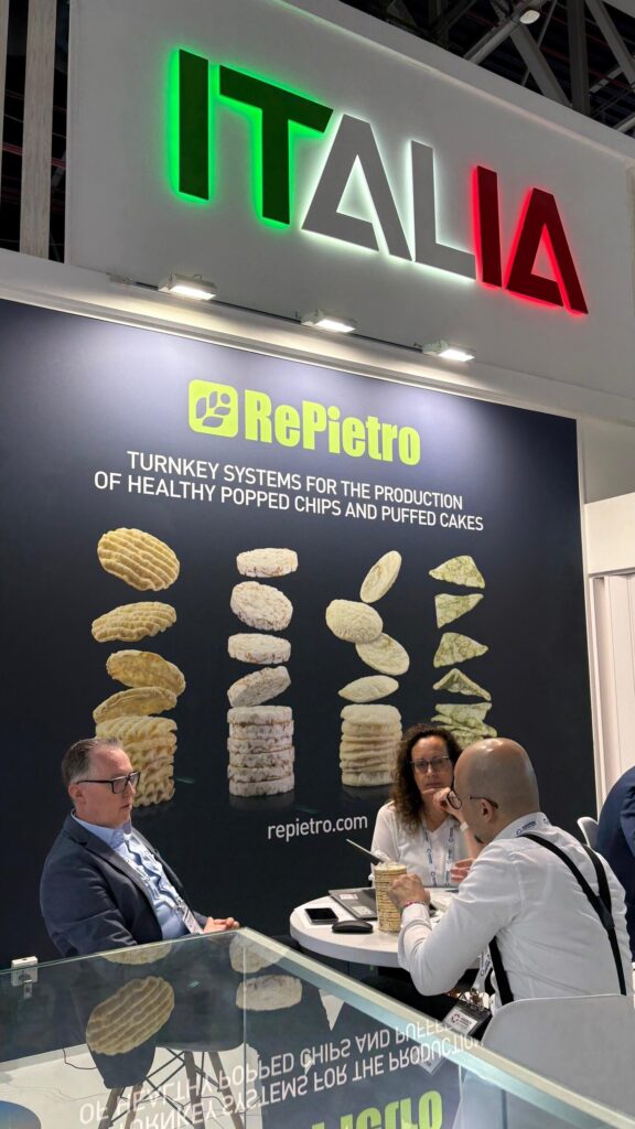 Presso il nostro stand abbiamo mostrato le più recenti tecnologie sviluppate per la produzione di popped chips e altri snack non fritti, leggeri e gustosi, ideali per un consumo più sano e consapevole. I riscontri ricevuti hanno confermato che il futuro del settore snack è orientato verso prodotti più salutari, croccanti e sostenibili, e siamo orgogliosi di contribuire attivamente a questa evoluzione.